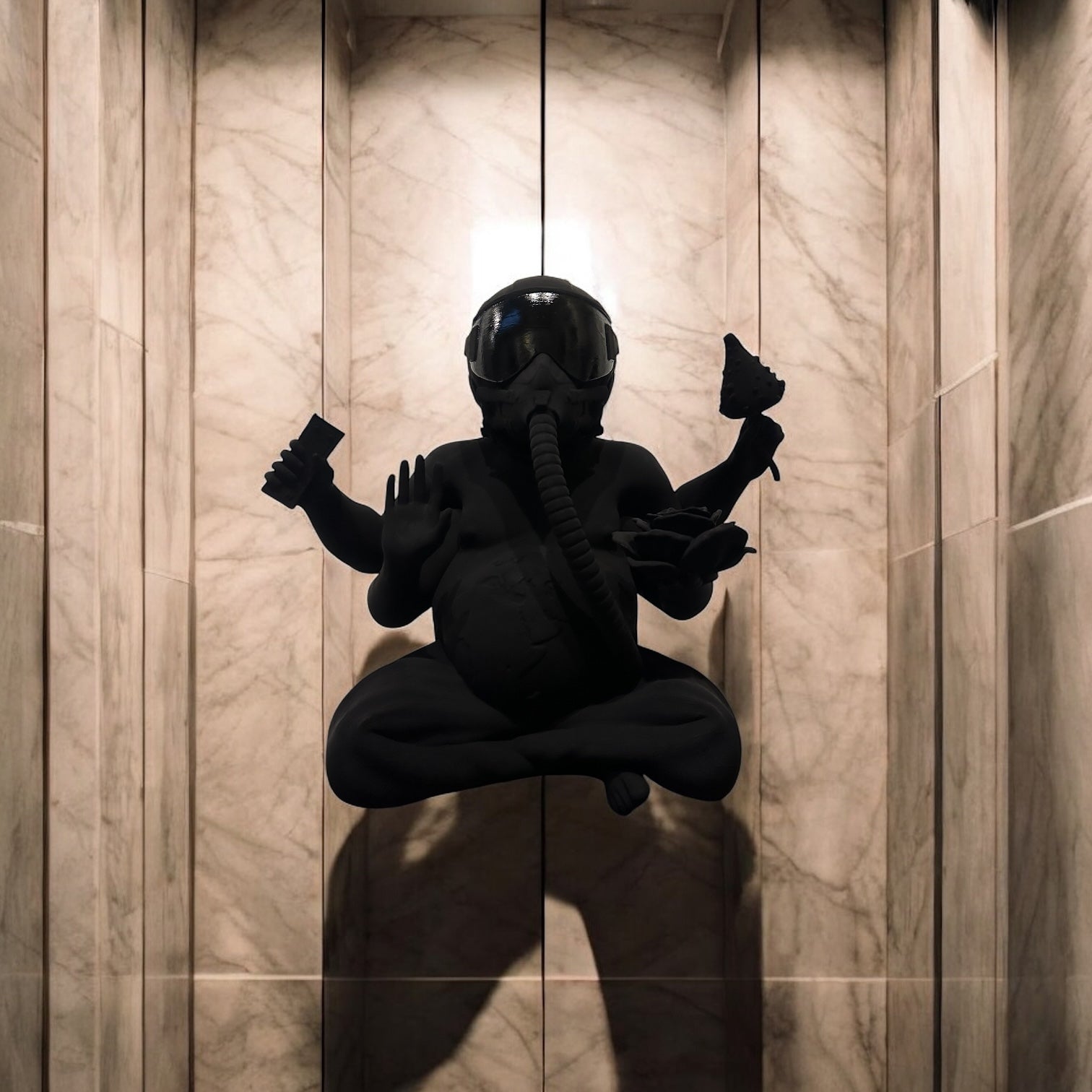 - Opposite, his second left hand delicately holds a rose, a timeless symbol of love and connection.